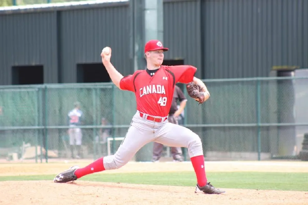 The 6-foot-4 hurler with a commitment to Texas has the chance to have a very solid three-pitch mix. He’ll touch 94 mph with his fastball and sits comfortably around 92 mph, throwing it with good sink and without a ton of effort. His 78-80 mph curveball is an average breaking ball now and he has a good feel for his 79-81 mph changeup. He’s around the zone with all three offerings and he’s a decent athlete, so he should continue to repeat his delivery well. There is some drop and drive in his mechanics at times, but nothing that can’t be corrected. He did throw well during Team Canada’s annual trip to Florida this spring.