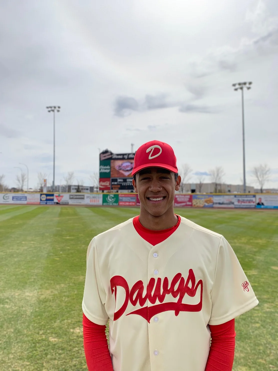 2015 season as a bantam with Okotoks Dawgs _: Homered into the trees at Conrad Park ... Turned on a 90-mph pitch in Florida that brought Division I scouts to the dugout asking questions... Turned on a 100-mph fastball as a 15-year-old ... Became the youngest to ever play in Tournament 12 when he was 13.