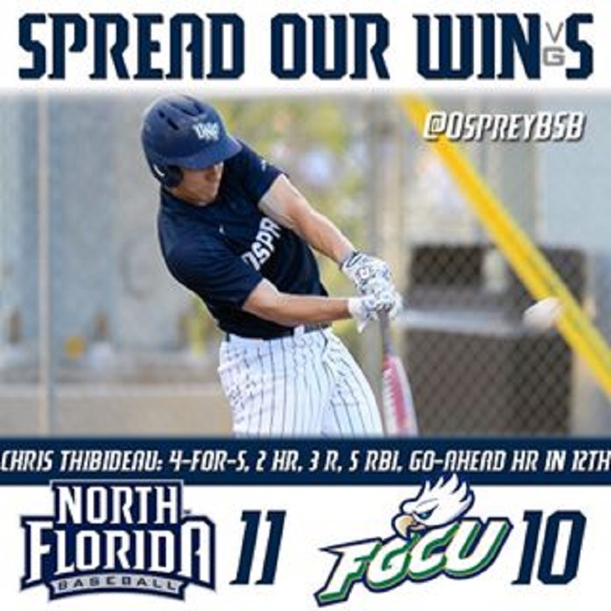 Thibideau hit a walk-off two-run home run in the bottom of the 11th inning against North Carolina-Wilmington as he went 4-for-5 with a homer, two doubles and run scored.