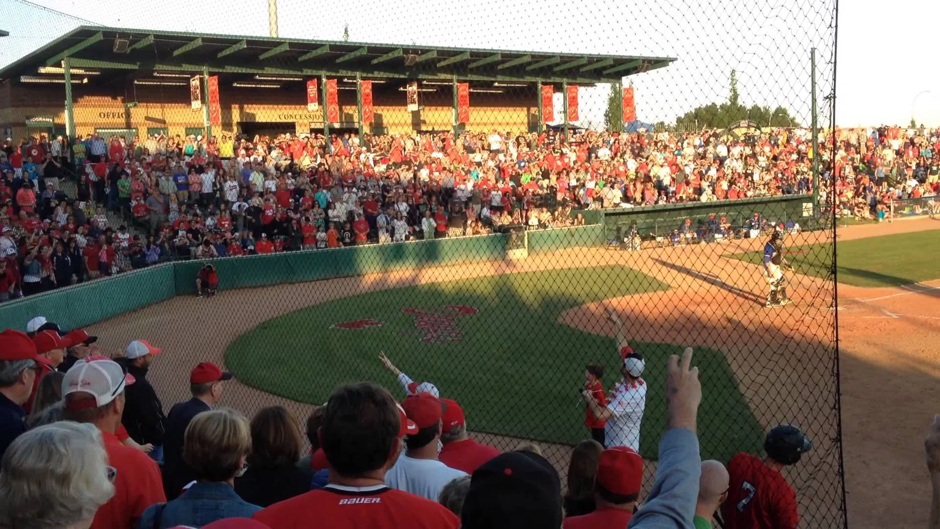 Fans are on their feet singing “Take Me Out to the Ballgame” at Seaman Stadium in Okotoks -- home of the Dawgs.