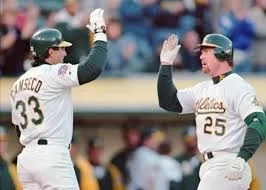 Jose Canseco and Mark McGwire of the Oakland A's Bash Brothers.