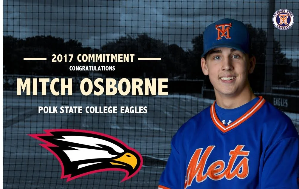 C Mitch Osborne (Whitby, Ont.) committed to Polk State, winners of three consecutive Suncoast Conference championships and five of the last six years.