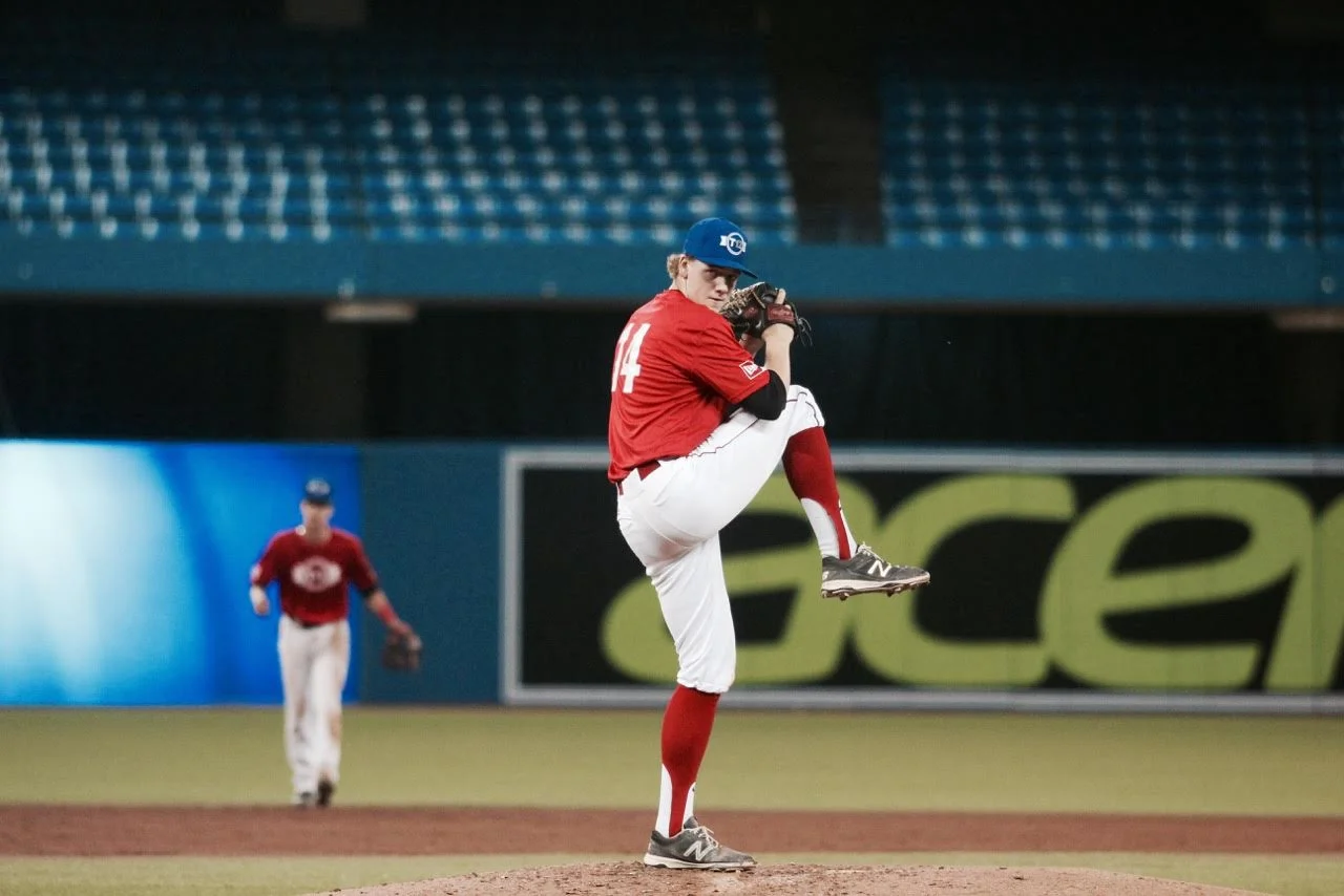 Right from the beginning it was clear this was going to be a game dominated by pitching. Green starter Harley Gollert looked confident early, striking out two batters and inducing an easy pop fly in the top of the first. His pitches were only touching 83 MPH, but he was still producing several swing and misses, leaving Alberta Red batters shaking their heads on the way to the dugout.