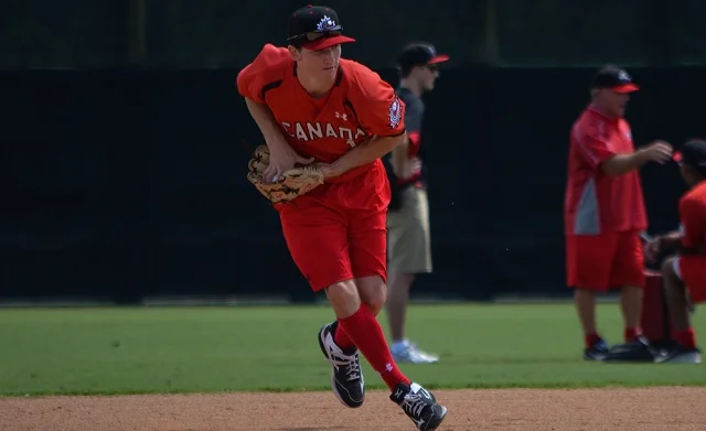 Moving to Ontario, he learned under the staff of former professional players at Centrefield Sports, becoming a member of the Great Lake Canadians program in its inaugural season. He began the showcase circuit early and was quickly offered several scholarship opportunities – committing to the Texas A & M Aggies – and became a Team Canada mainstay.