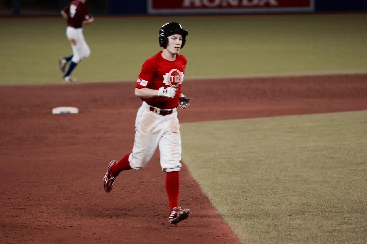 Alberta's Greg Student rounds the bases. Photo Credit: Tyler King