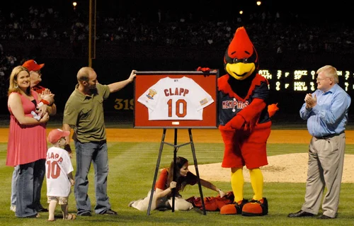 Stubby Clapp (Windsor, Ont.) and family in 2007 when he had his No. 10 retired in Memphis. Clapp left the Blue Jays as a hitting instructor at triple-A Buffalo to manage triple-A Memphis.