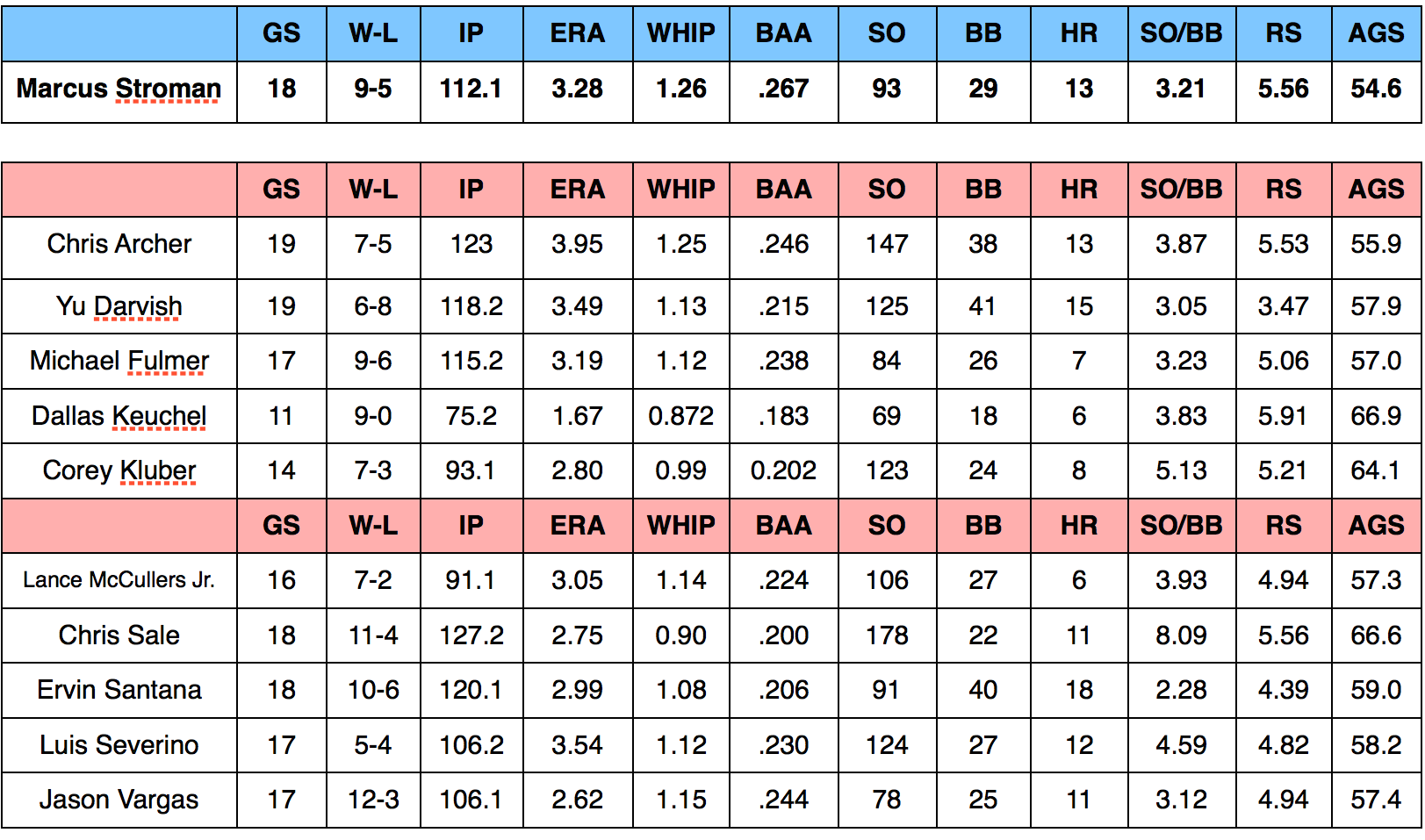 Unfortunately for Stroman, this stat also seems to prove that ERA isn’t everything, as even Archer had a higher AGS at 55.9, despite his much higher ERA and similar WHIP.