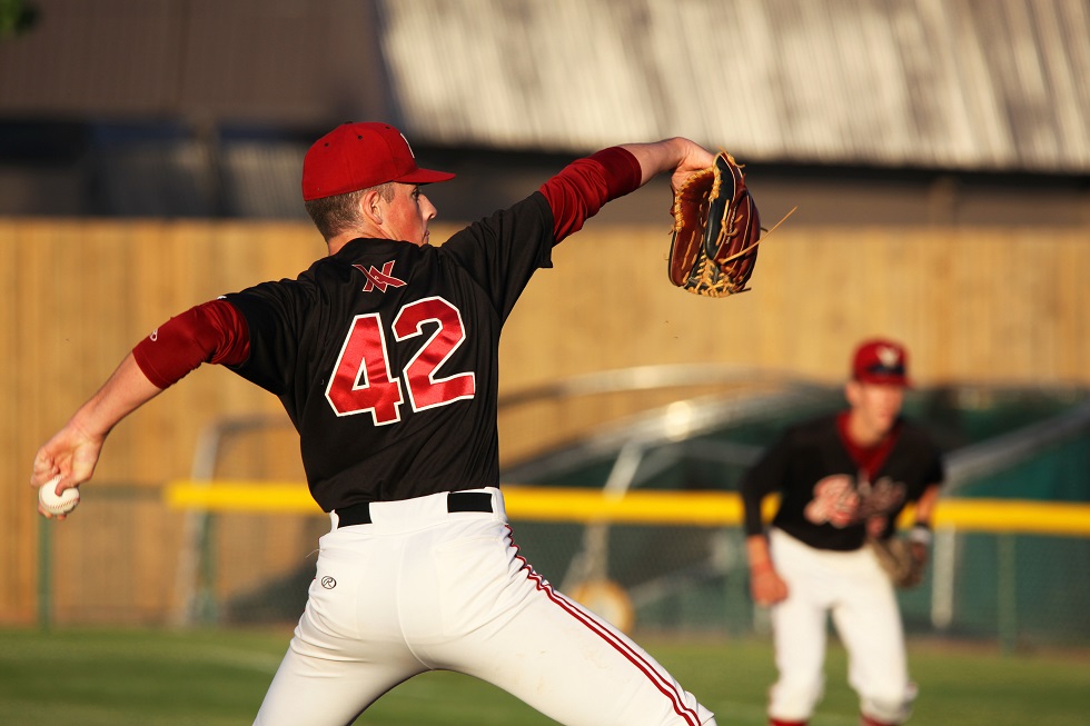 Garrett Nicholson started on the mound pitching five innings in an 8-2 win against the Calgary Junior Dinos. Nicholson allowed two runs on three hits and five walks, as he fanned four. Zach Newman struck out the side. and Garrett Hawkins pitched an inning.