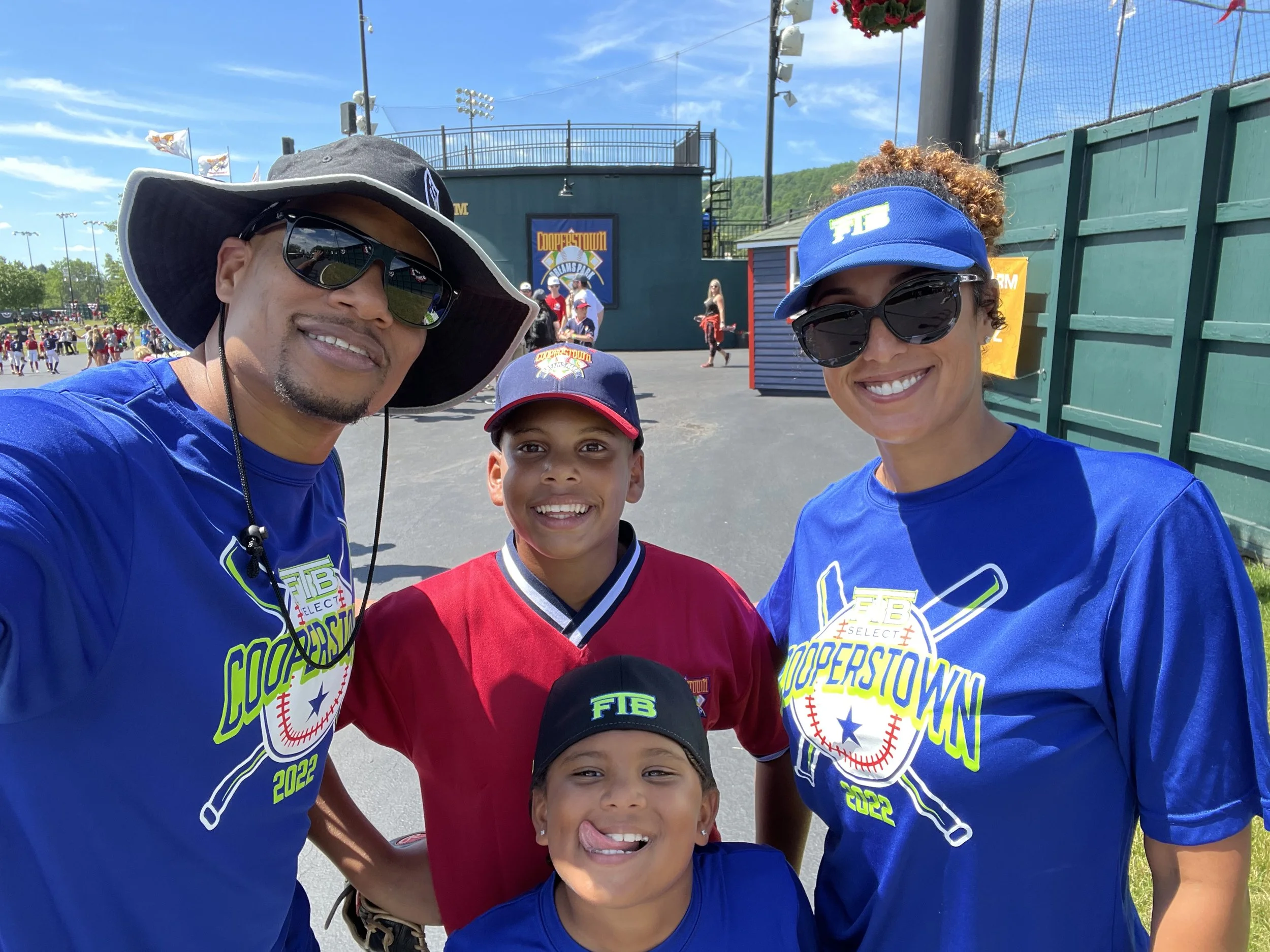 Mikey (middle) competed in a tournament in Cooperstown, N.Y. in 2022. His family was there to cheer him on, including (from left to right): his dad, Mike; sister, Sydney and mom, Sarah.