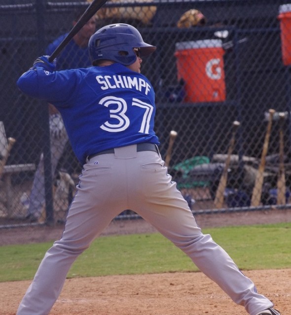 Ryan Schimpf homered twice as the triple-A Buffalo Bisons lost 4-3 to the Toledo Mud Hens on a day when all four Blue Jays affiliates lost.