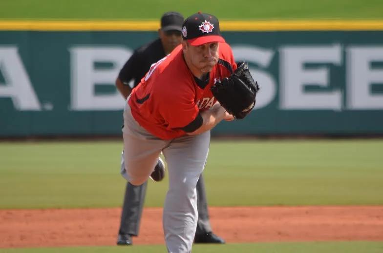 The 34-year-old right-hander is playing at home for the first time in years, his family gets to see him throw and even spend a little time with him, he’s been reunited with old friends on the diamond, and Team Canada is winning.