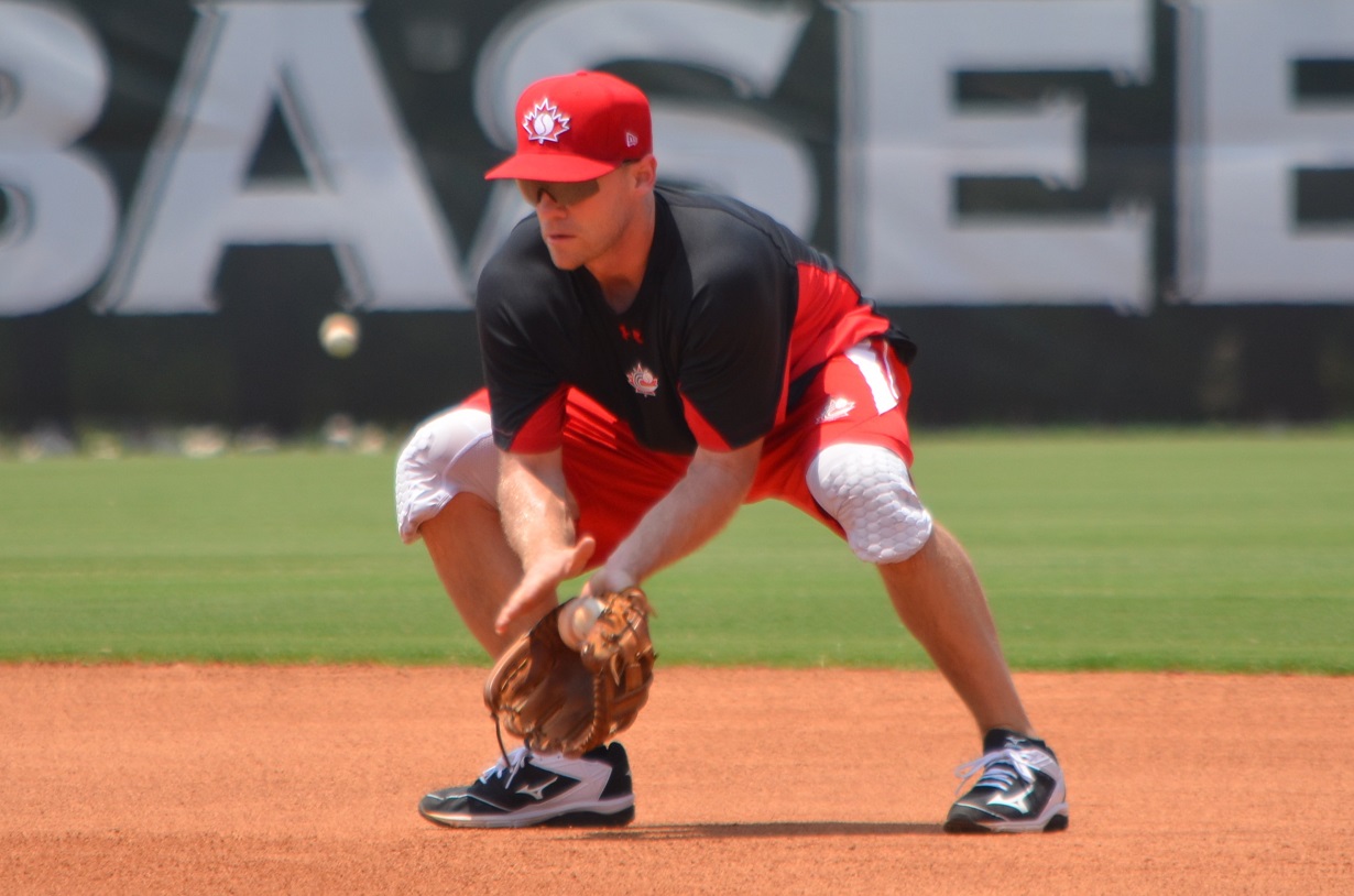 2B Skyler Stromsmoe (Etzikom, Alta.) has been a rock for Team Canada -- bigger than a fist ... like the kind he used to pick on his father's cattle farm. Photo: Alexis Brudnicki.