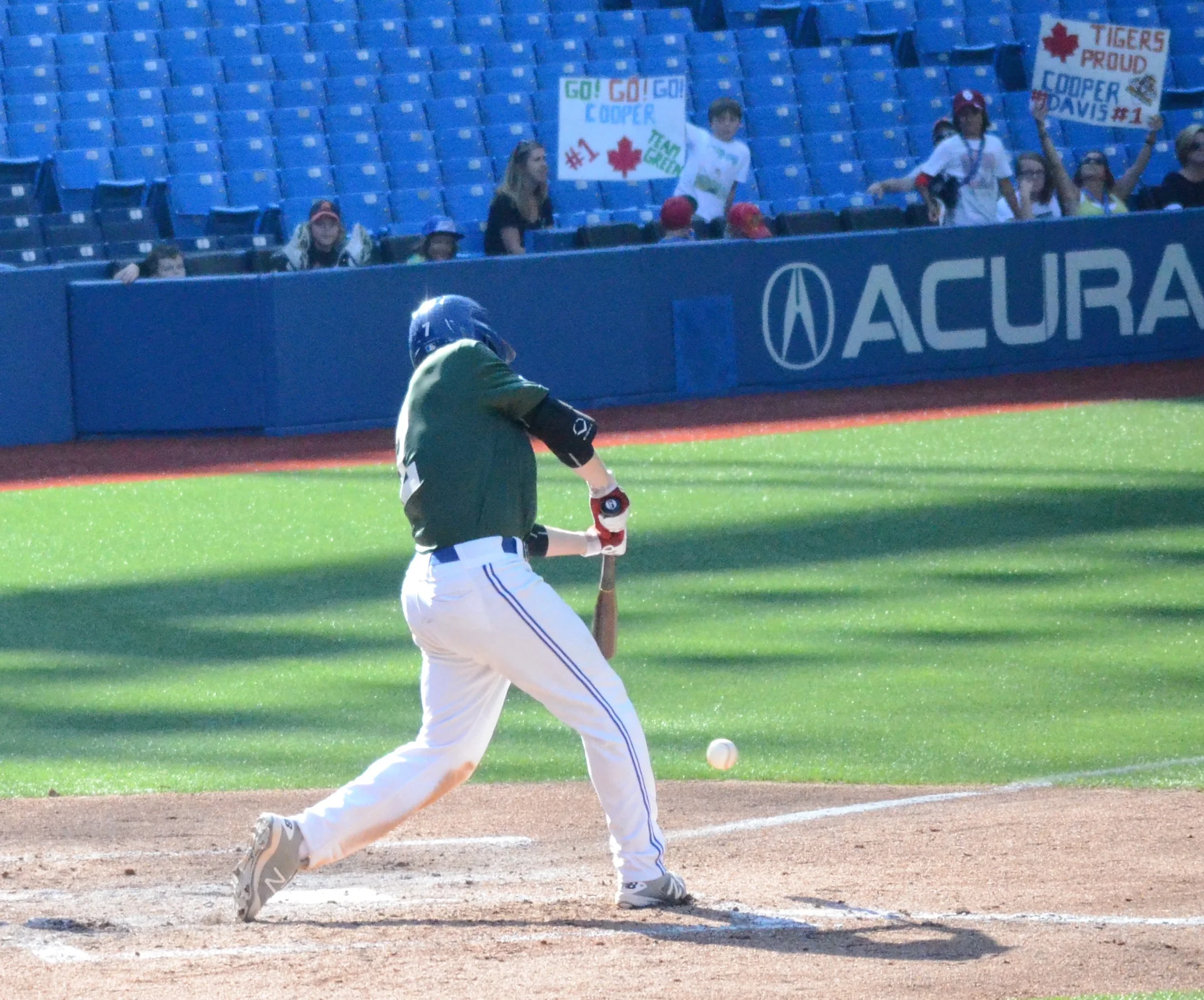 OF Cooper Davis (Mississauga, Ont.) of the Ontario Blue Jays had his own fan club and they came bearing signs.