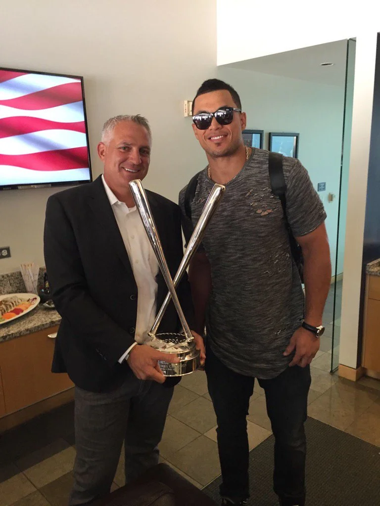 Joel Wolfe with his clietn Giancarlo Stanton of the Miami Marlins.