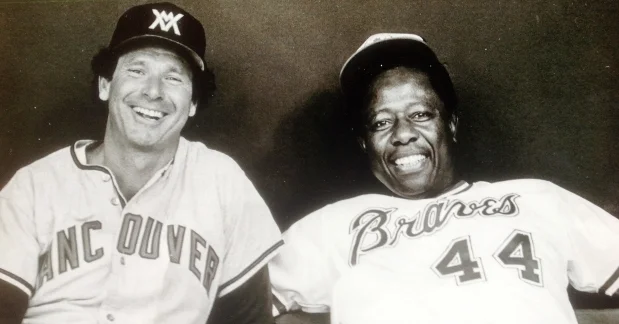 Photo: Wayne Norton (left) with Baseball Hall of Fame member Hank Aaron in 1983.