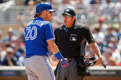 “The third pitch was roughly the same spot as a ball he had called earlier and this one he called a strike,” Donaldson said. “I said to him ‘don’t allow their dugout to change your zone. Either it’s a strike or a ball down there. He said ‘that’s my bottom.’”