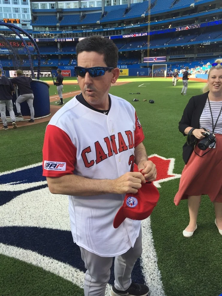 Watching were Thomson’s former manager Eric MacKenzie, outfielder Doug McPhail, catcher Jim Eliopoulos and shortstop Tom Nelson, to name a few on the Rogers Centre carpet thanks to Jason Zillo of the Yankees.