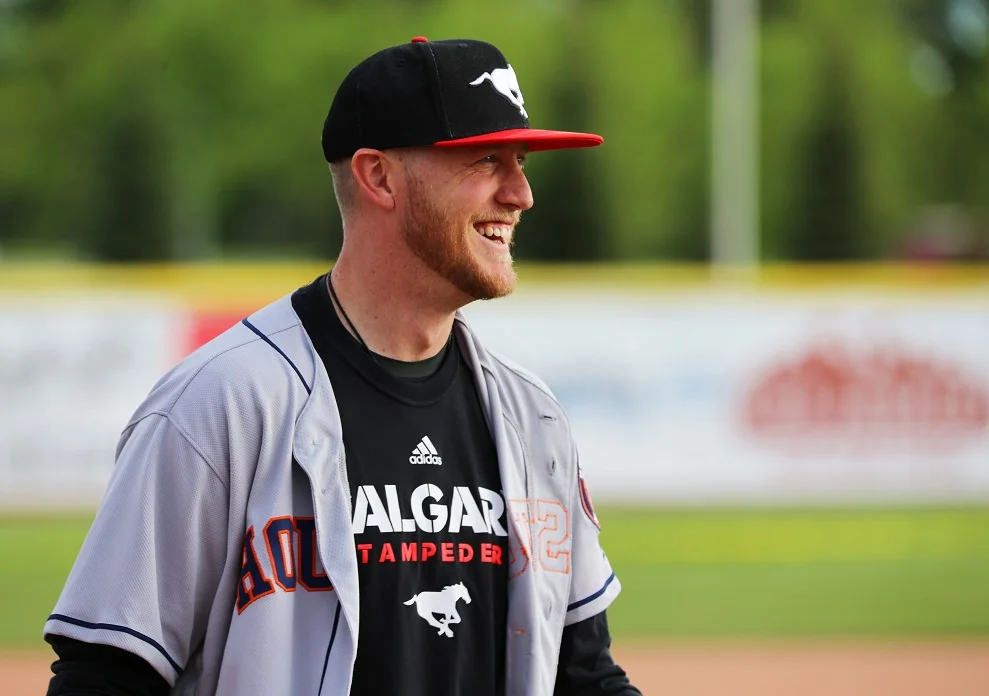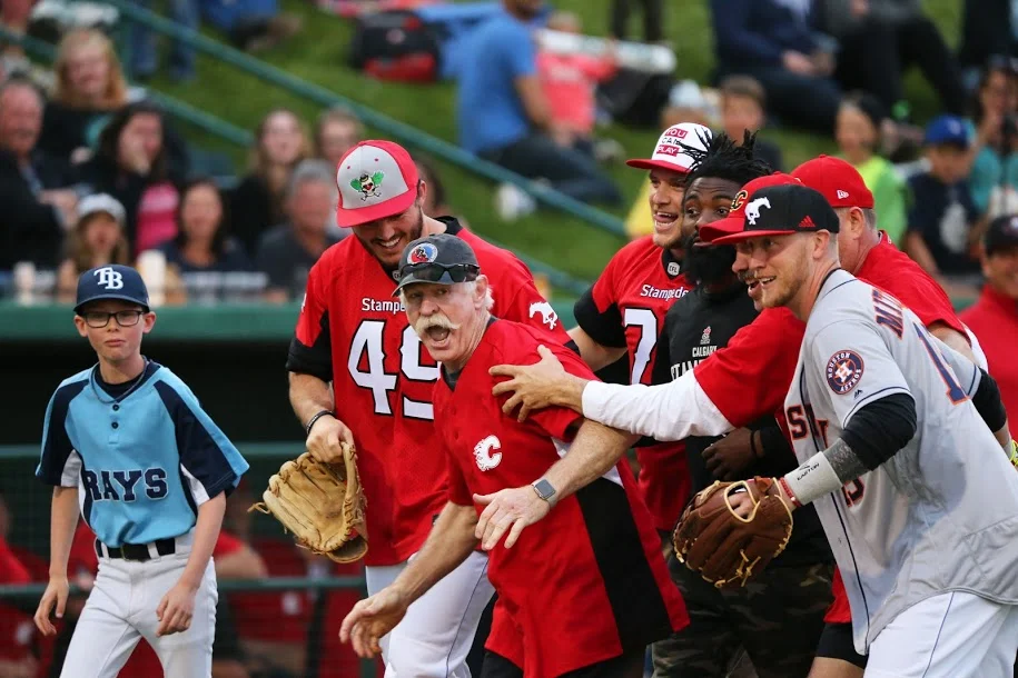 Once the game started, though, it was Stamps quarterback Bo Levi Mitchell stealing the show with a bat in his hand.
