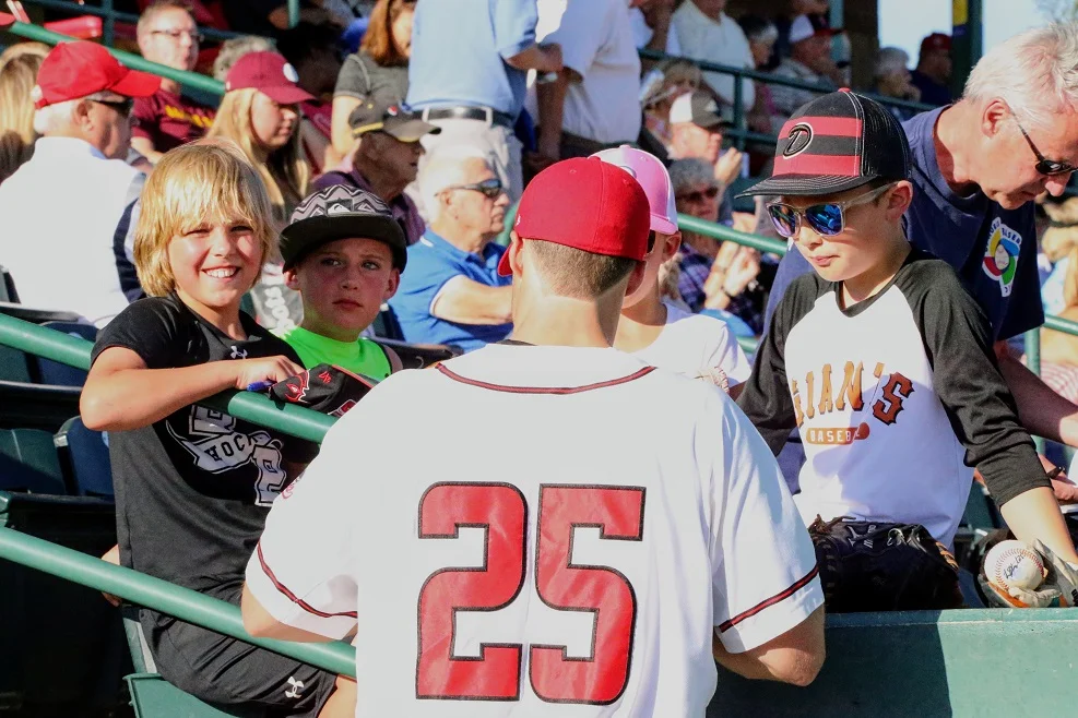RHP Liam Stroud (Maple Ridge, BC) of the British Columbia Thunderbirds signs for fans.