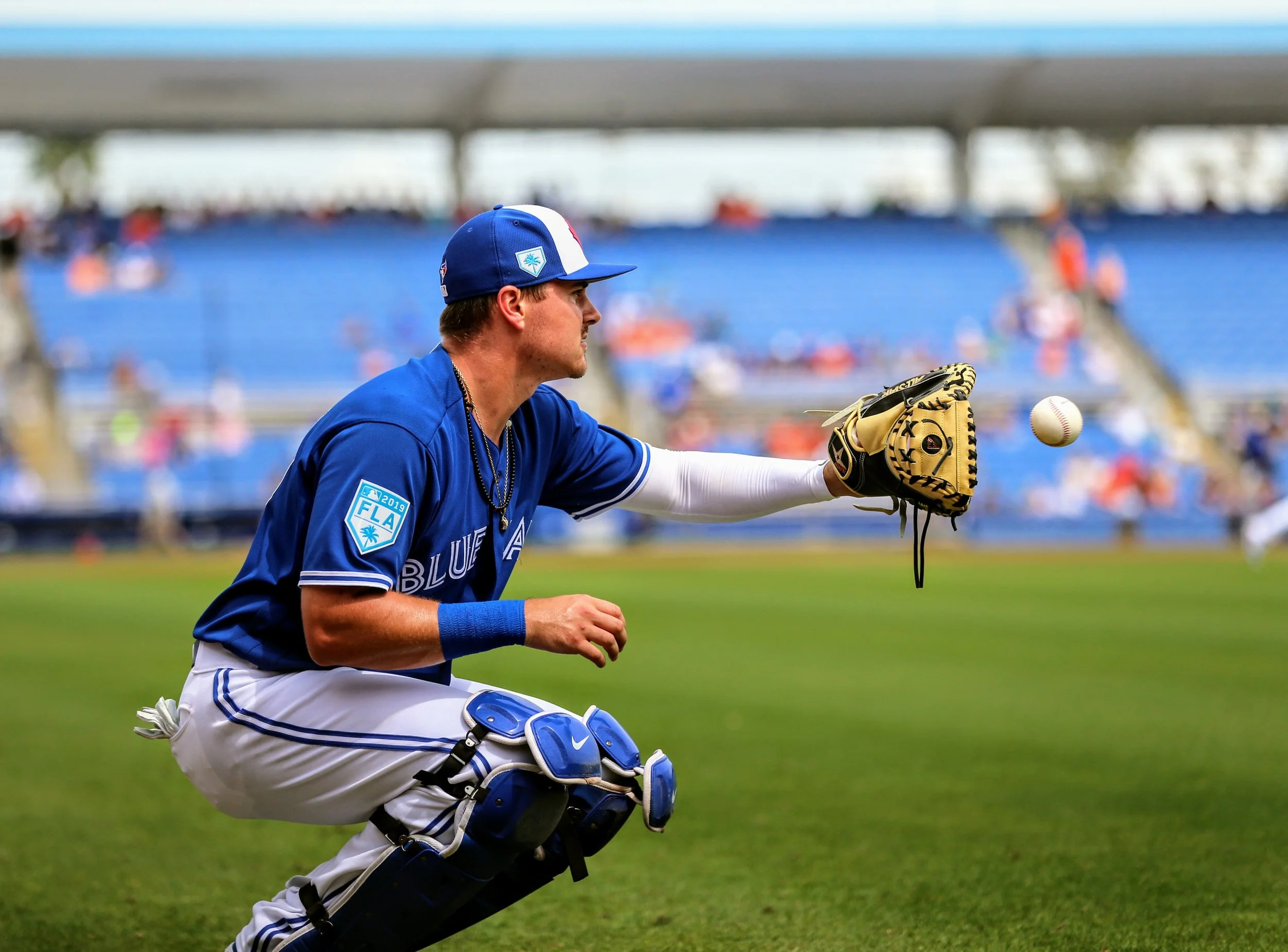 Reese McGuire caught the entire game for the Toronto Blue Jays against the Baltimore Orioles on Saturday. He went 1-for-4 with an RBI double at the plate. Photo: Amanda Fewer