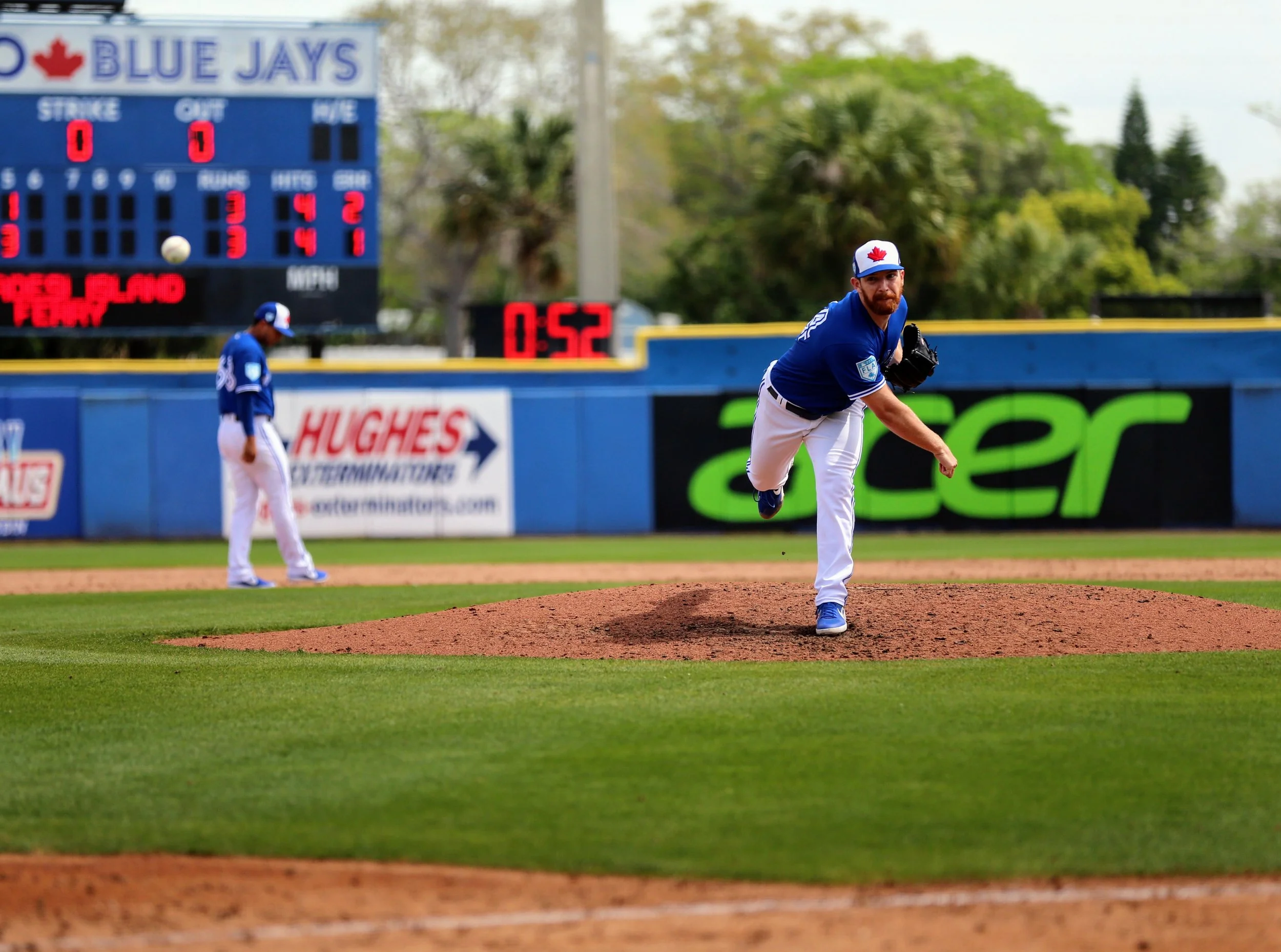 Right-hander Sam Gaviglio started for the Toronto Blue Jays and allowed two runs in 3 2/3 innings. Photo: Amanda Fewer.