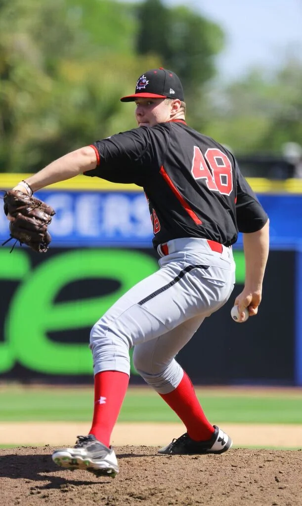 LHP Jack DeCooman (North Vancouver, BC) of the North Shore Twins, faced only 10 hitters in his three innings against the Tampa Bay Rays looks like he has the signs down pat.