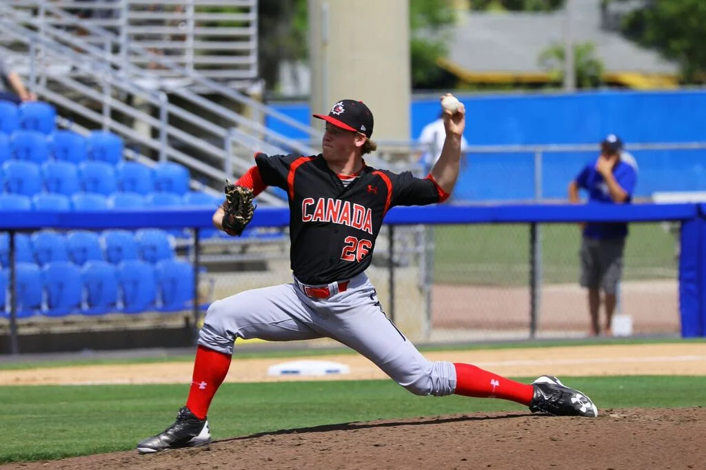 LHP Will Undershute (Okotoks, Alta.) of the Okotoks Dawgs was touched for six runs facing the pros.