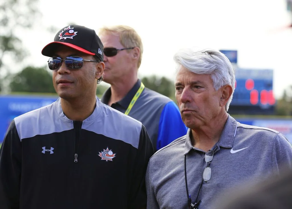 Blue Jays president Mark Shapiro dropped by to see fellow Princeton grad, Team Canada coach Greg Hamilton.