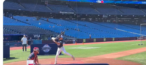 Terriers outfielder Ethan Mota-Dias (Halton Hills, Ont.) takes some cuts on Tuesday at the Canadian Futures Showcase at Rogers Centre. Photo: Toronto Blue Jays Academy