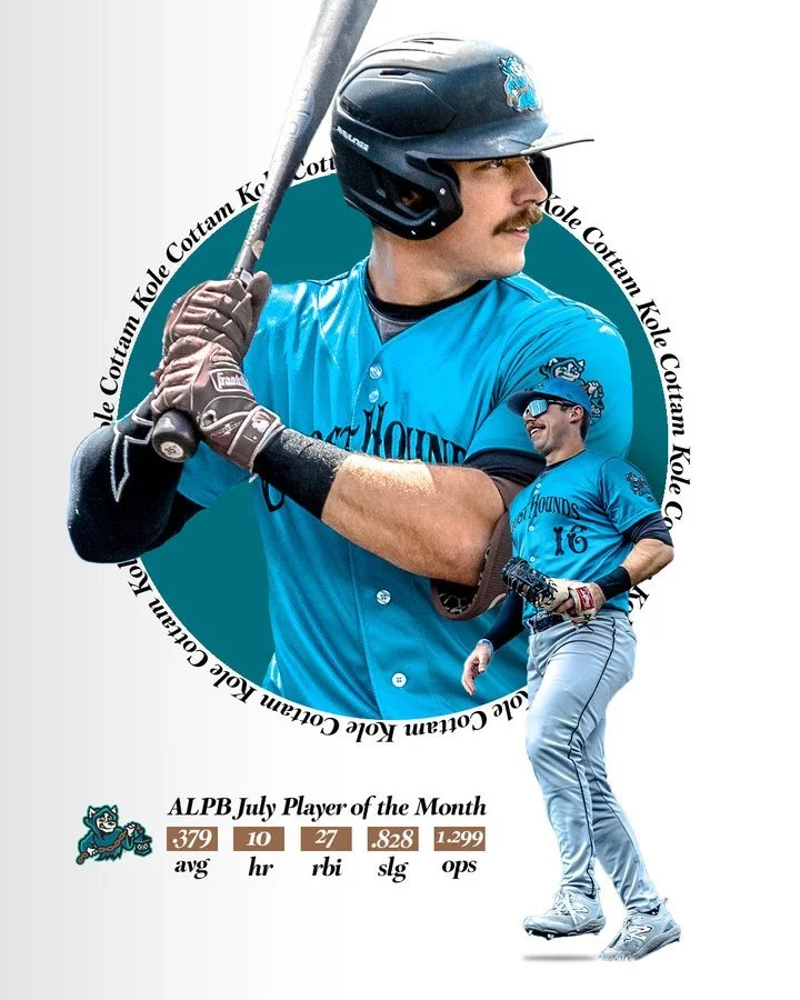 Cottam was born in Memphis, Tenn., and his family is from Burlington, Ont. The right-handed hitting slugger batted .290 with 30 home runs and 75 RBIs for the independent Atlantic League’s Spire City Ghost Hounds in 2023. His .578 slugging percentage was the second highest in the Atlantic League. For his efforts, the former Boston Red Sox fourth-round pick was named the catcher on the Atlantic League Postseason All-Star Team. Cottam also topped Canadians in the independent or foreign ranks in home runs, RBIs and total bases (229).