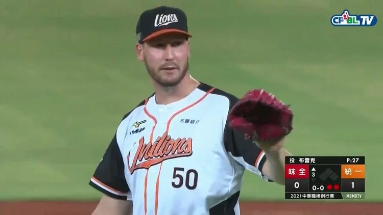 Uni-President 7-Eleven Lions right-hander Brock Dykxhoorn (Goderich, Ont.) has been named the winner of CBN’s 2023 Claude Pelletier Award, as the top pitcher in the foreign or independent ranks. Photo: CPBL TV