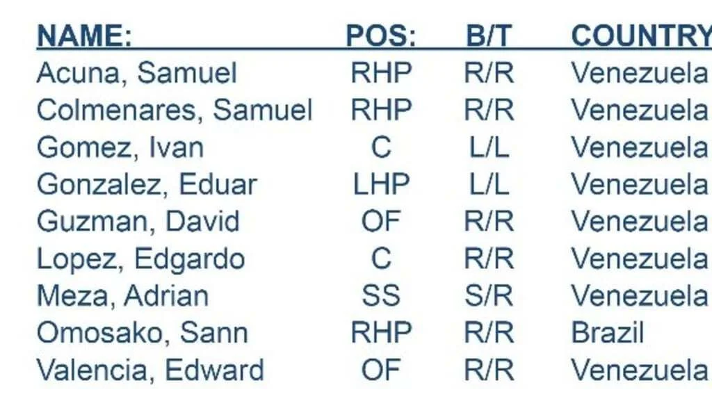 Below is a list of the nine international free agents signed by the Blue Jays: