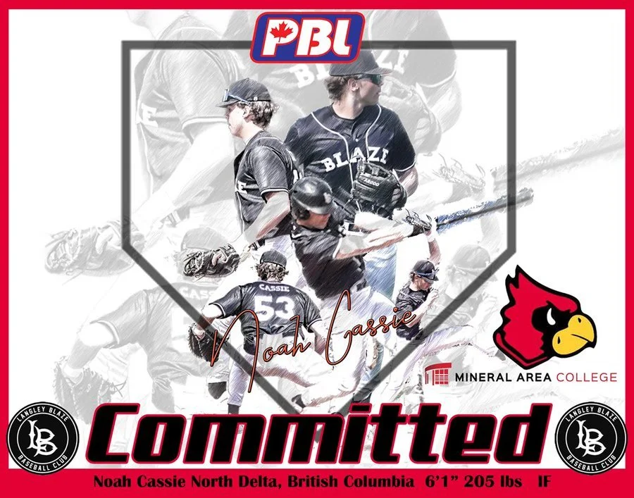 Langley Blaze grad Noah Cassie (North Delta, BC) had 10 hits - including two home runs - in six games for Mineral Area College last week. Photo: David Zuskind/Langley Blaze