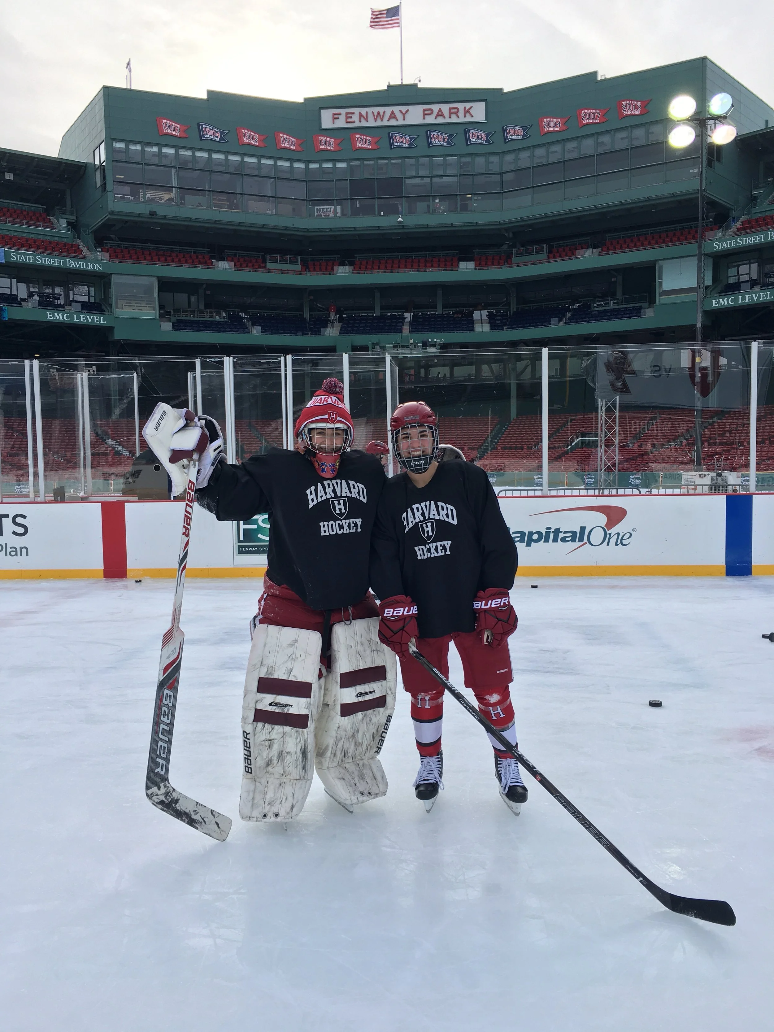 Maxx Tissenbaum (Toronto, Ont.) a Toronto Mets grad and now a Colroado Rockies farmhand tooks in his sister Molly Tissenbauum's game at Fenway Park at Molly played goal for Harvard.