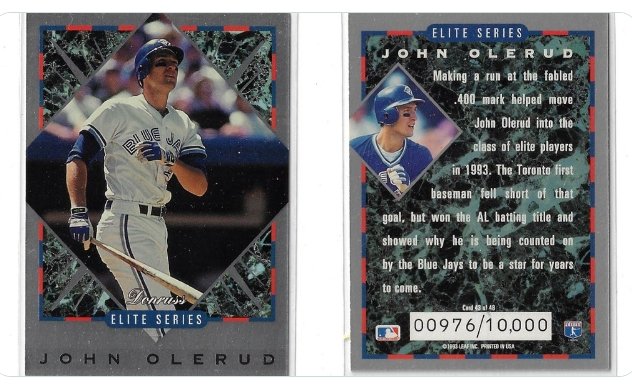 It’s a 1993 Donruss Elite John Olerud. This card was inserted in a limited number of packs.