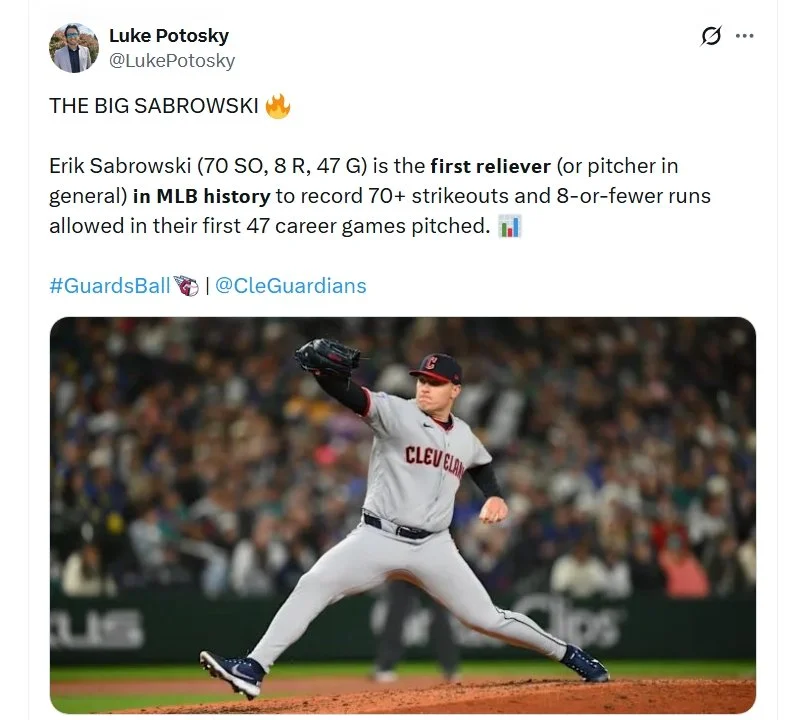 Speaking of Canadian relievers who have been near-perfect this season, Erik Sabrowski (Edmonton, Alta.) has yet to permit a run and has six holds in eight appearances for the Cleveland Guardians.