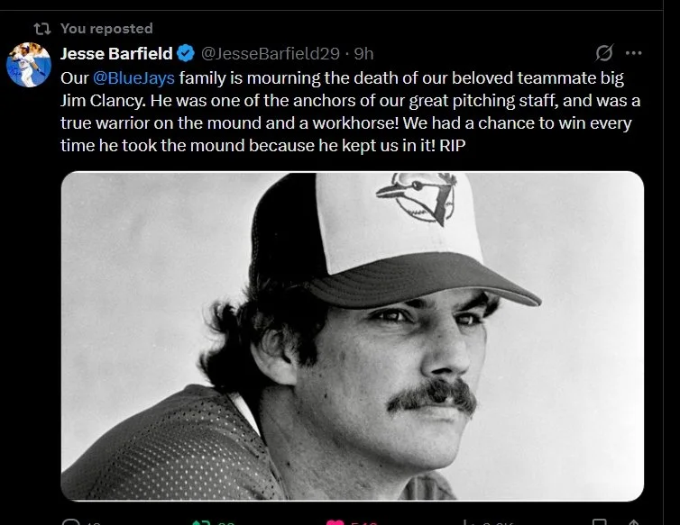On Monday, I wrote a detailed obituary about longtime Blue Jays pitcher Jim Clancy who passed away at the age of 69. No cause of death has been released but the family obituary asks for donations to the Pancreatic Cancer Action Network.