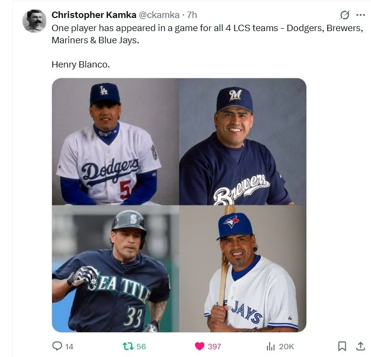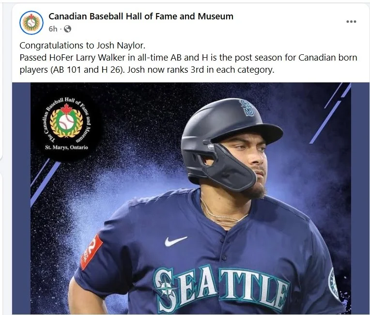 He shared that there have been three, four-hit games by Canadians in the postseason: Terry Puhl (Melville, Sask.) for the Houston Astros in Game 5 of the 1980 NLCS, Larry Walker (Maple Ridge, B.C.) for the St. Louis Cardinals in Game 1 of the 2004 World Series and Naylor for the Guardians in Game 1 of their AL Wild-Card Series in 2020.