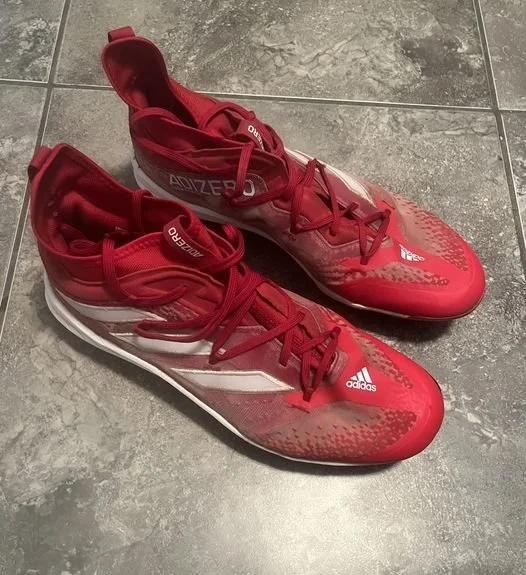 Cleats worn by Owen Caissie (Burlington, Ont.) while playing for Canada in the World Baseball Classic. Photo: Canadian Baseball Hall of Fame