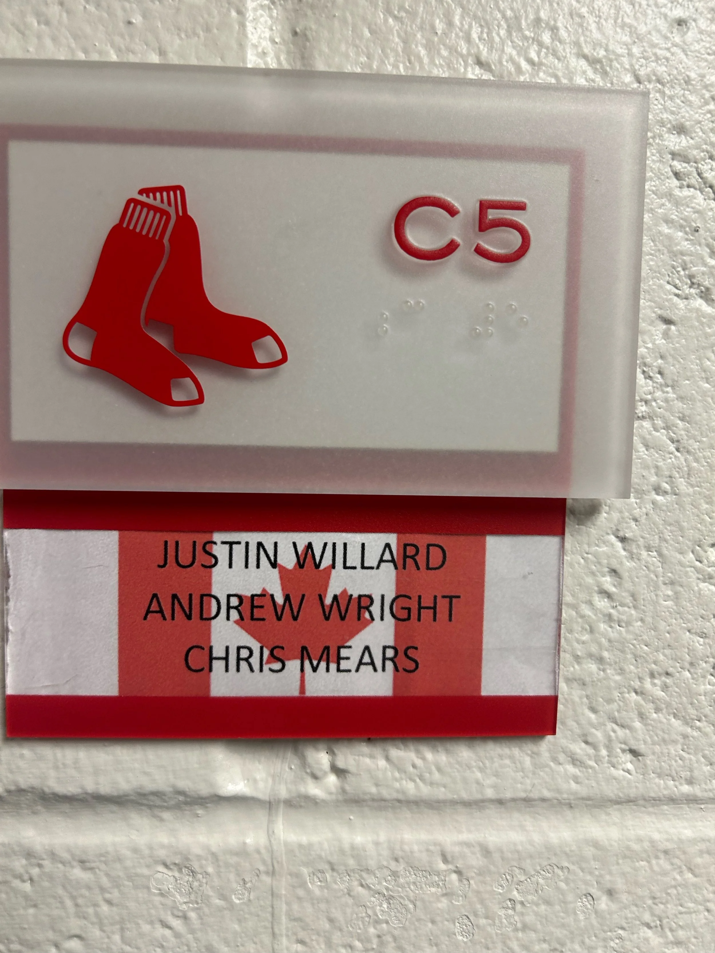 -National Team alum and former Detroit Tigers right-hander Chris Mears (Ottawa, Ont.) is now a pitching coordinator in the Boston Red Sox organization. He recently sent the photo above to Bob Elliott. The photo showcases the sign outside of the “Canadian office” at the Red Sox spring training complex in Fort Myers, Fla. This spring, Mears is sharing office space with fellow Canuck Justin Willard (Brampton, Ont.), the director of pitching in the Red Sox organization, and Andrew Wright (Woodstock, Ont.), the Red Sox minor league field coordinator.