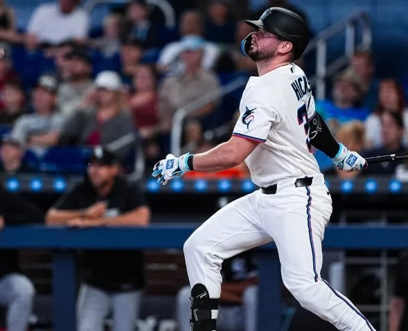 Toronto Mets alum Liam Hicks (Toronto, Ont.) is off to a historic start with the Miami Marlins. Photo: Miami Marlins, Instagram