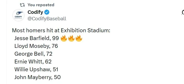 Who hit the most home runs at Toronto’s Exhibition Stadium?