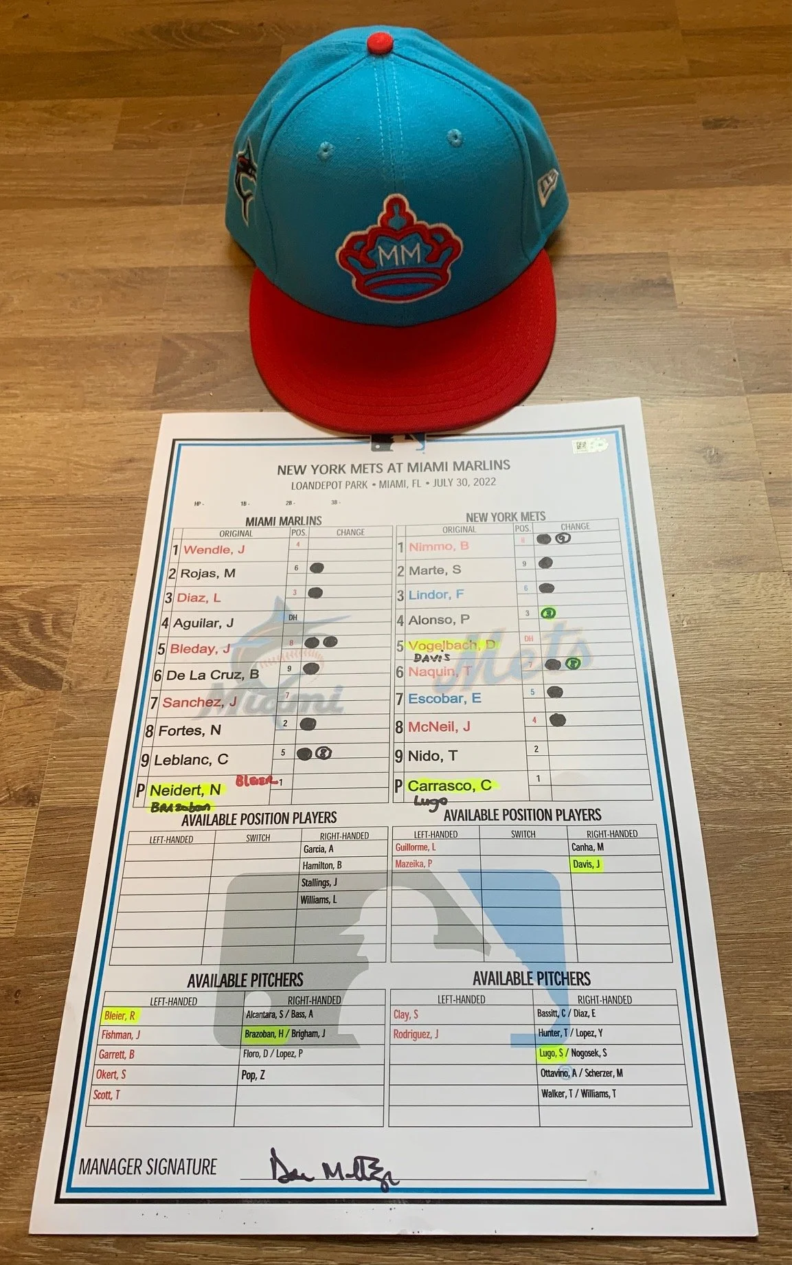-Speaking of the Canadian Baseball Hall of Fame, they recently received the hat (photo above) that Miami Marlins infielder Charles Leblanc (Laval, Que.) wore in his first major league game on July 30. They also received the Marlins’ official scorecard (signed by manager Don Mattingly) from that contest. Leblanc doubled in the eighth inning off New York Mets starter Carlos Carrasco in that game for his first big league hit. Leblanc has now played 45 games for the Marlins and is hitting .270 with four home runs and 11 RBIs.