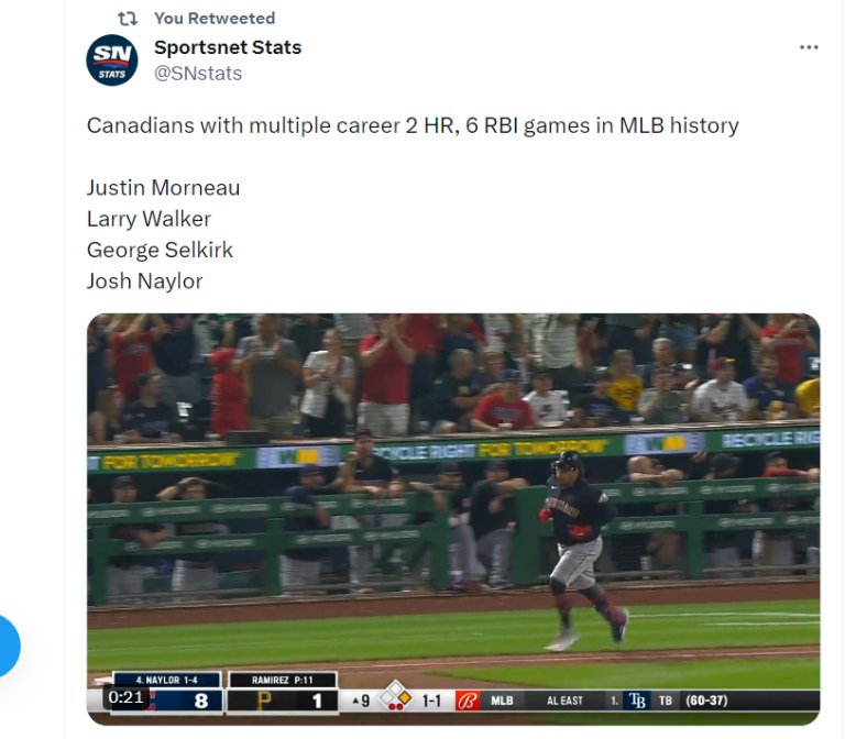 -Speaking of red hot, almost no one has been more sweltering at the plate since June 1 than Cleveland Guardians first baseman Josh Naylor. Since June 1, he has batted .376 with seven home runs and 36 RBIs in 38 games. His .312 batting average this season ranks third in the American League, while his 76 RBIs are tied for the second most (with Shohei Ohtani). And after he belted two home runs and had six RBIs against the Pittsburgh Pirates on Tuesday, Sportsnet shared this graphic on Twitter: