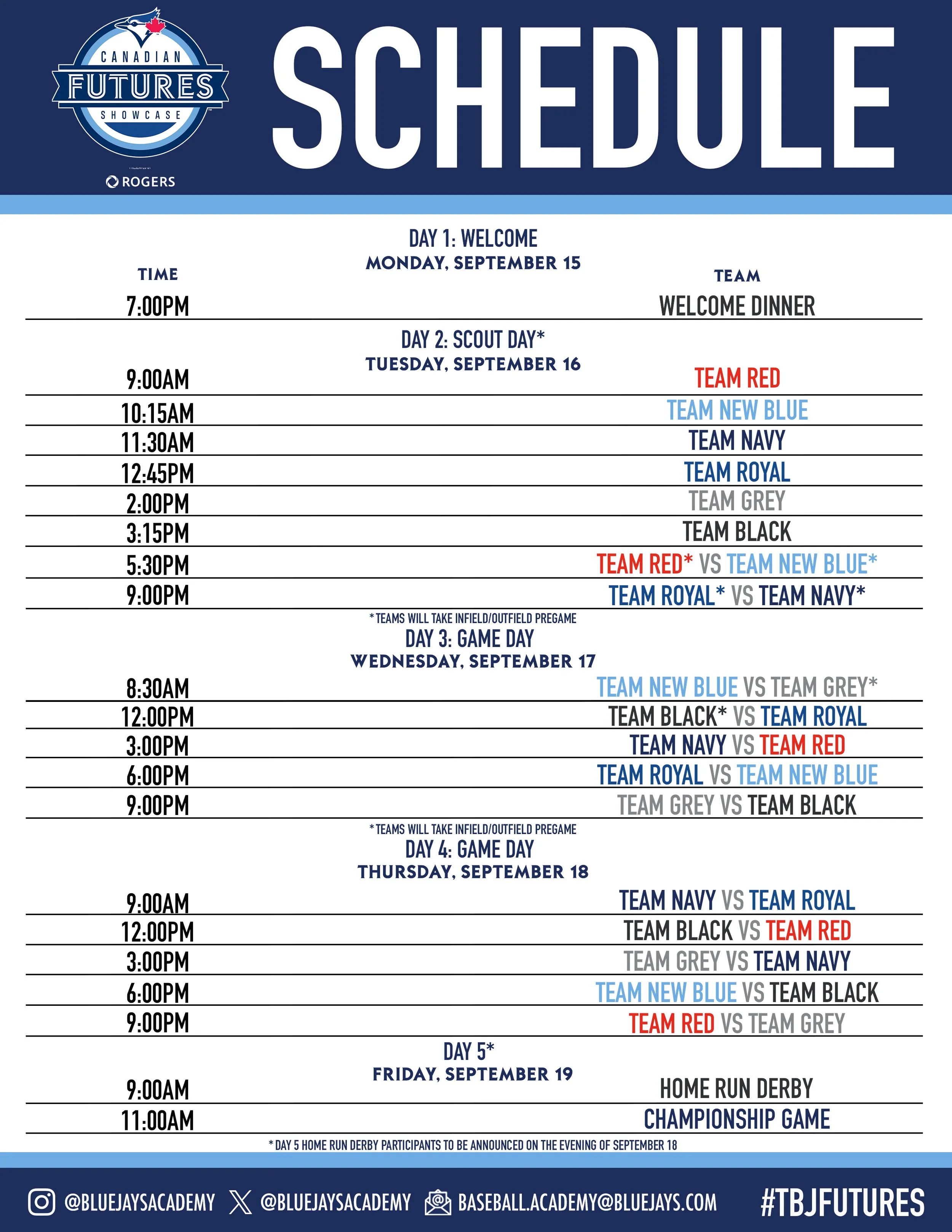 The Toronto Blue Jays Academy has announced the rosters for the six teams that will compete in the Canadian Futures Showcase that will take place from September 16 to September 19 at the Rogers Centre.