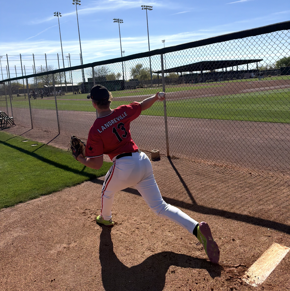 ABC right-hander Zachary Landreville (Saint-Jerome, Que.) started for Canadian Premier against a team of Arizona Diamomdbacks prospects in their first game of their spring Arizona Tour on Tuesday. Photo: Canadian Premier
