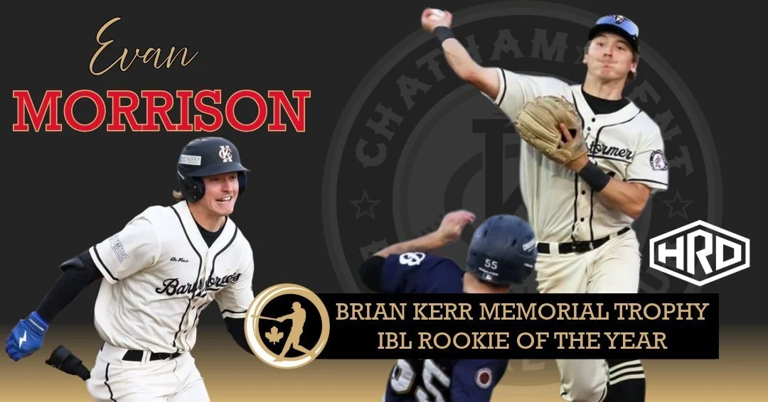 Chatham-Kent's Evan Morrison (Mitchell, Ont.) won the Brian Kerr Memorial Trophy after hitting a league-best .422 in 35 games with the Barnstormers. No other IBL player cracked the .400 mark in 2025.