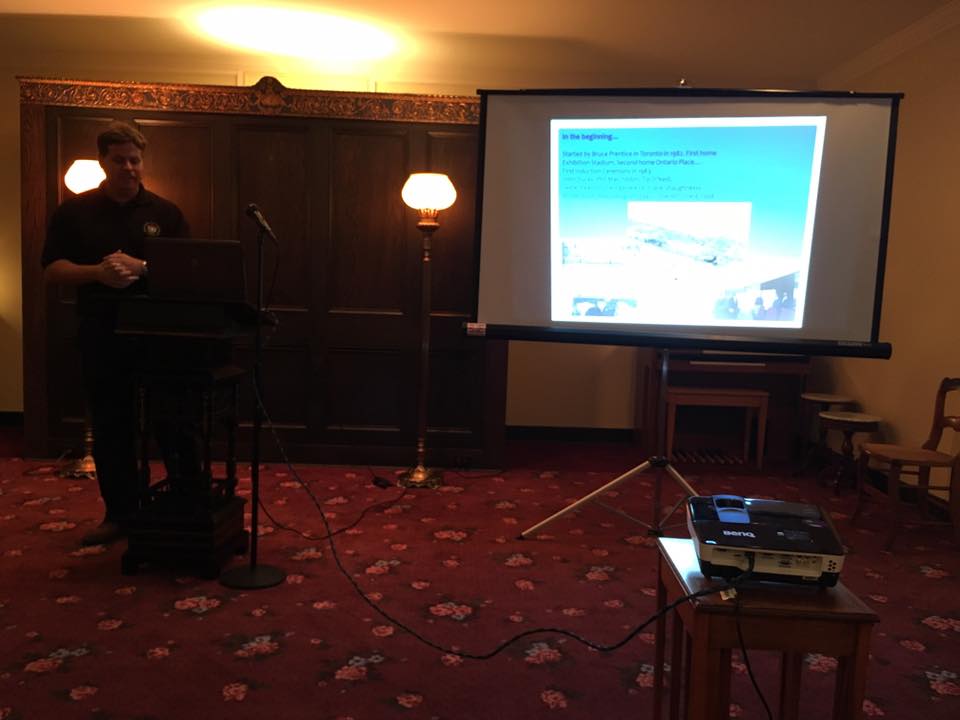 After the induction ceremony, Crawford talked to the local SABR chapter about the Canadian hall.