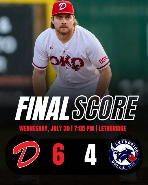 The Okotoks Dawgs edged the Lethbridge Bulls 6-4 on Wednesday night at Spitz Stadium.