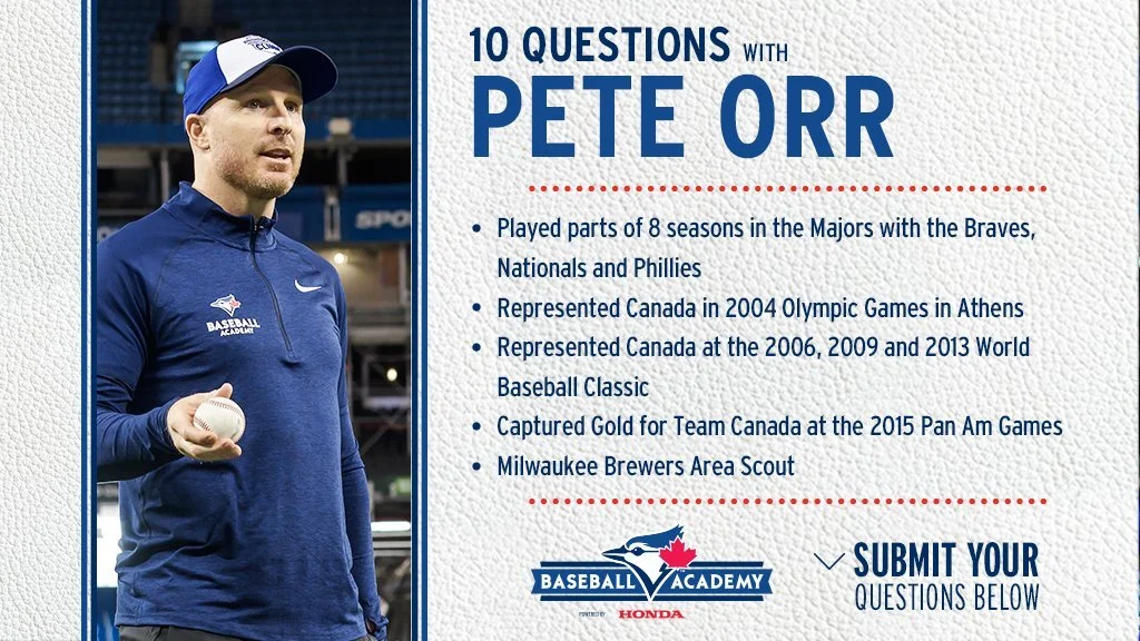 INF Dylan O’Rae, Sarnia, Ont., double-A Biloxi Shuckers, Milwaukee Brewers, Justin Orton, Essex, Ont., integrated performance coach, class-A Greensboro Grasshoppers (Pirates), Mark Orton, Oshawa, Ont., Hall of Fame committee chair, Baseball Ontario; Clare Padmore, Toronto, Ont., biomechanist, research and development, Toronto Blue Jays, Stephen Paine, Mississauga, Ont., producer Blue Jays Central, Sportsnet; 3B Damiano Palmegiani, Surrey, BC, triple-A Buffalo, Toronto Blue Jays, Jon Pankuch, Kamloops, BC, co-owner; Kamloops NorthPaws, Mike Parlow, Qualicum Beach, BC, GM, Parksville Royals, James Parker, Toronto, Ont., area scout, Chicago Cubs; Cayleigh Parrish, The SPORT Gallery, distillery district, Wayne Parrish, Collingwood, Ont., The SPORT Gallery, distillery district, Rhonda Pauls, Rustico, PEI, executive director, Baseball PEI; Jeff Peach, Calgary, Alta., program director, Webber Academy Wildcats; Pierre Karl Péladeau, CEO, TVA, only man to loan out me his private plane for a weekend; Curtis Pelletier, Victoria, BC, mental performance coach, Between The Ears Pocast.